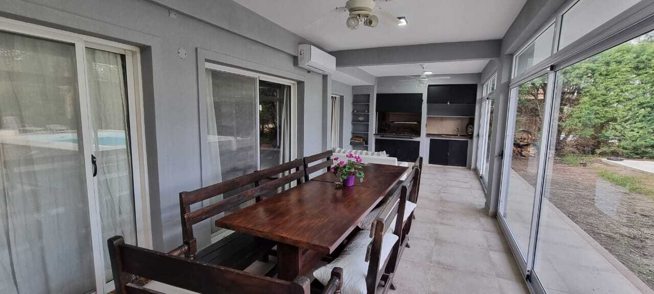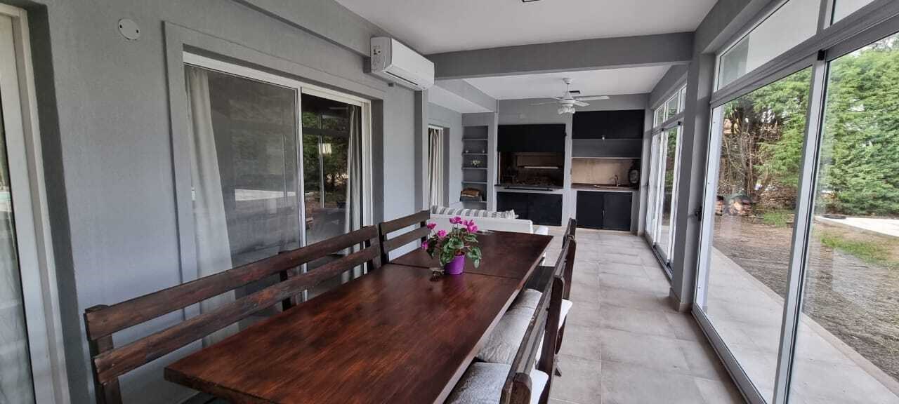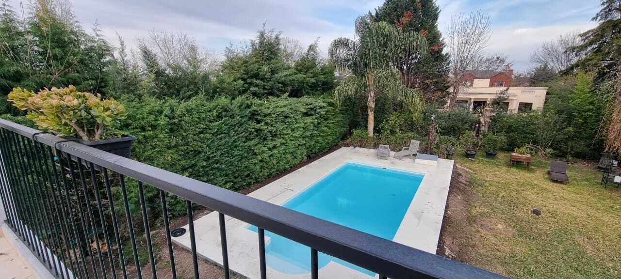 EXCELENTE casa en Alquiler TEMPORAL FEBRERO Y MARZO 2026, desarrollada en dos plantas y totalmente amueblada, dentro del Barrio cerrado Los Pilares. P.B: Gran living comedor con vistas al parque, cocina amplia totalmente equipada, comedor diario integrado, toilette de recepcion, escritorio (apto dormitorio huespedes) con baño privado, y hermosa suite en PB con amplio vestidor, baño privado y vistas al parque. P.A: Cuenta con tres dormitorios, uno en suite con vestidor y baño completo, y los 2 restantes con baño completo que los asiste. Hermosa terraza con vista al parque/piscina. Exterior: Gran parquizacion con hermosa piscina, galería amplia con parrilla con cerramiento vidriado y equipo Split para refrigeracion/calefaccion. Garage techado y gran explanada vehicular. Consultar valor MARZO Detalles: Calefacción por piso radiante, aire acondicionado en todos los ambientes.