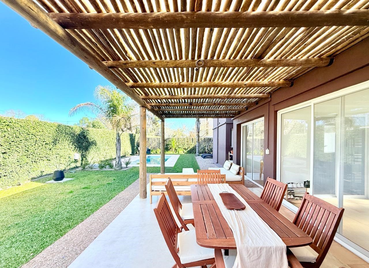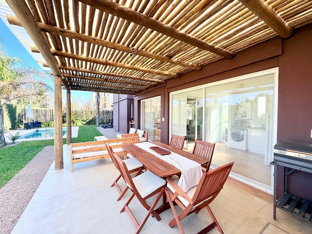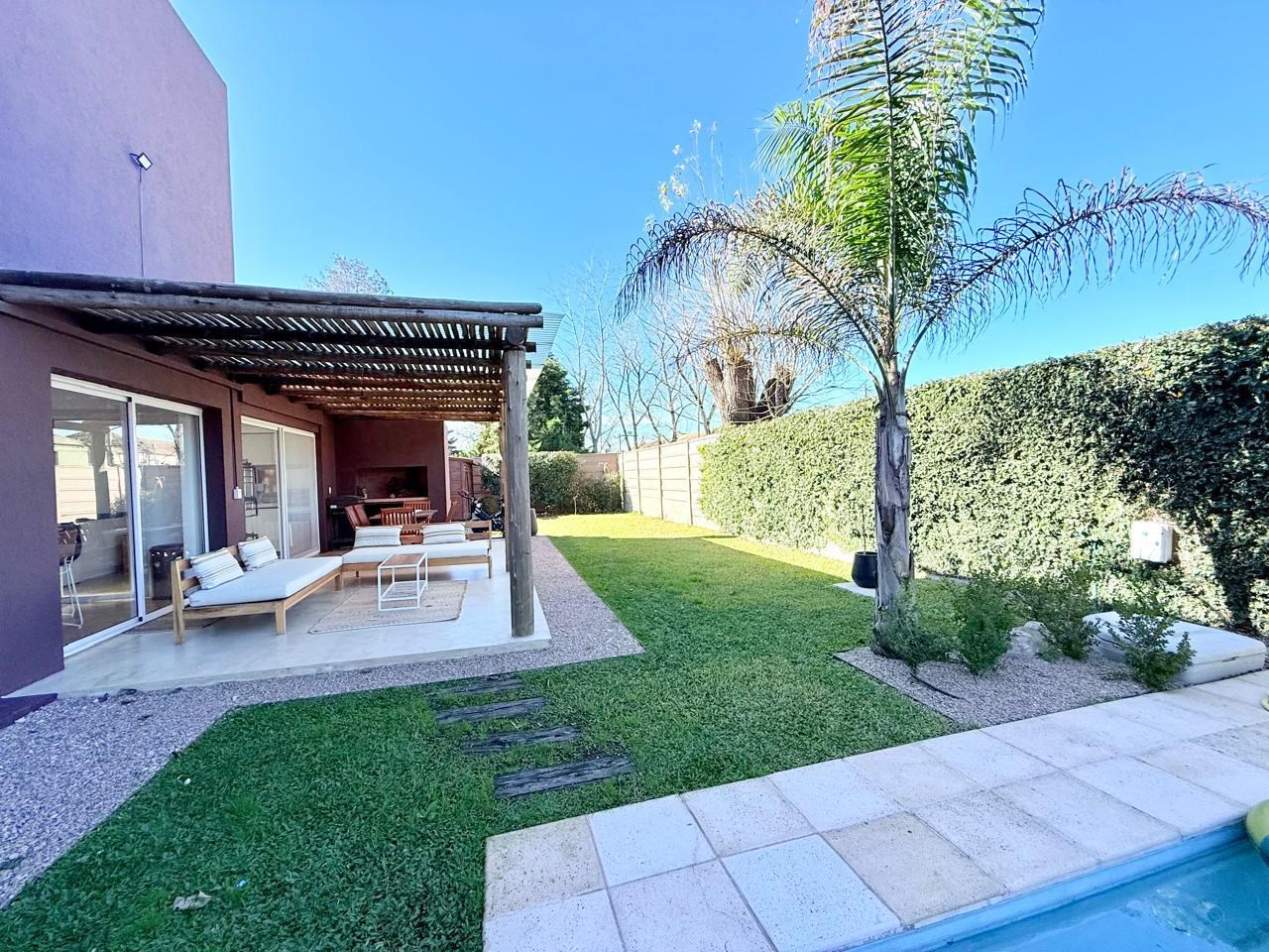 IMPECABLE! APTO CREDITO! MAGNIFICA CASA de 4 ambientes con HERMOSO PARQUE Y PISCINA, a la venta en CALIFORNIA VILLAGE. Destacada por su diseño moderno, espacios funcionales y luminosos, y exigentes detalles de calidad. Emplazada sobre gran lote de 398 m, cuenta con gran ambiente living-comedor integrado, con hermosas vistas a la piscina, toilette de recepción, cocina totalmente equipada con alacenas, muebles bajomesada, lavavajillas y gran isla, y amplio lavadero con muebles a medida. Amplia galería con parrilla, hermoso parque diseñado por paisajista, piscina con gran solarium. En Planta Alta cuenta con 3 dormitorios amplios y luminosos. El dormitorio principal en suite con baño completo, escritorio y amplio placard de piso a techo; y los 2 dormitorios restantes con baño completo que los asiste. Cochera pasante para 2 autos, explanada vehicular. Calefacción por radiadores, refrigeración por Splits en los 4 ambientes, cortinas roller sunscreen y blackout, jardín parquizado, cerco vivo consolidado, riego por aspersion, muebles a medida. Interiores de Placards completos. California Village está ubicado a metros del km 43 de Panamericana Ramal Pilar, rodeado de barrios privados (Highland Park, Ayres de Pilar, Armenio, entre otros), instituciones educativas y deportivas. Caracterizado por su entorno tranquilo y familiar, cuenta con seguridad 24 hs, estacionamiento de cortesía, y juegos para niños.
