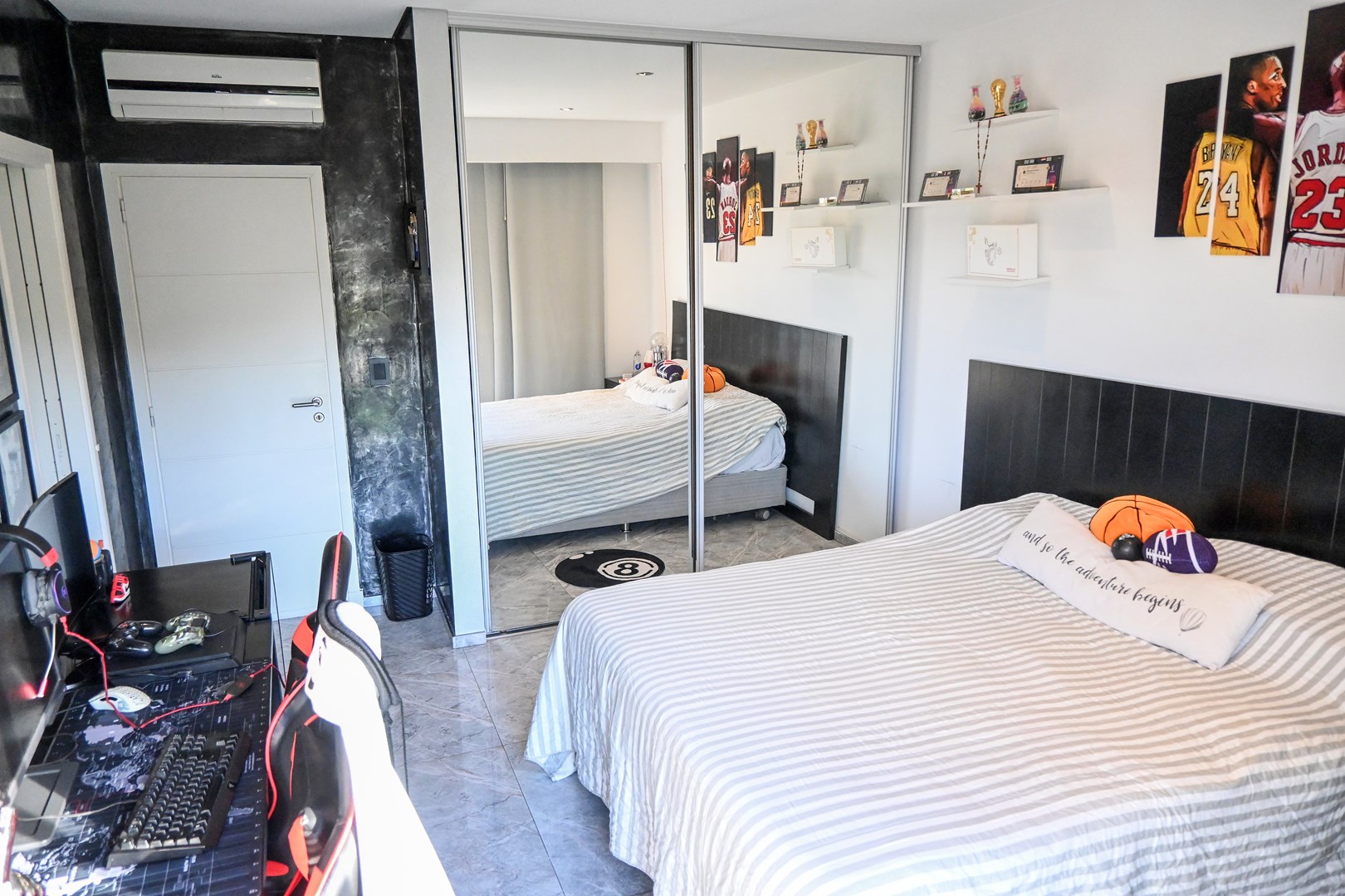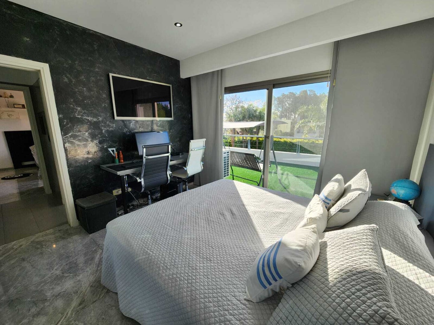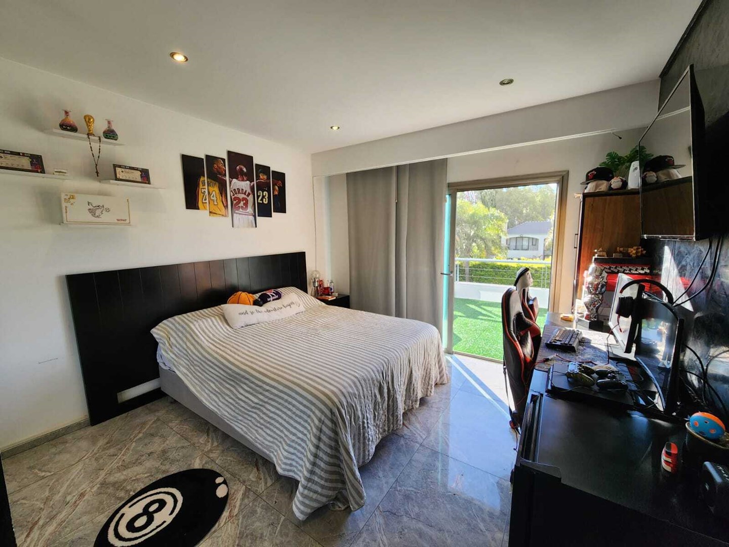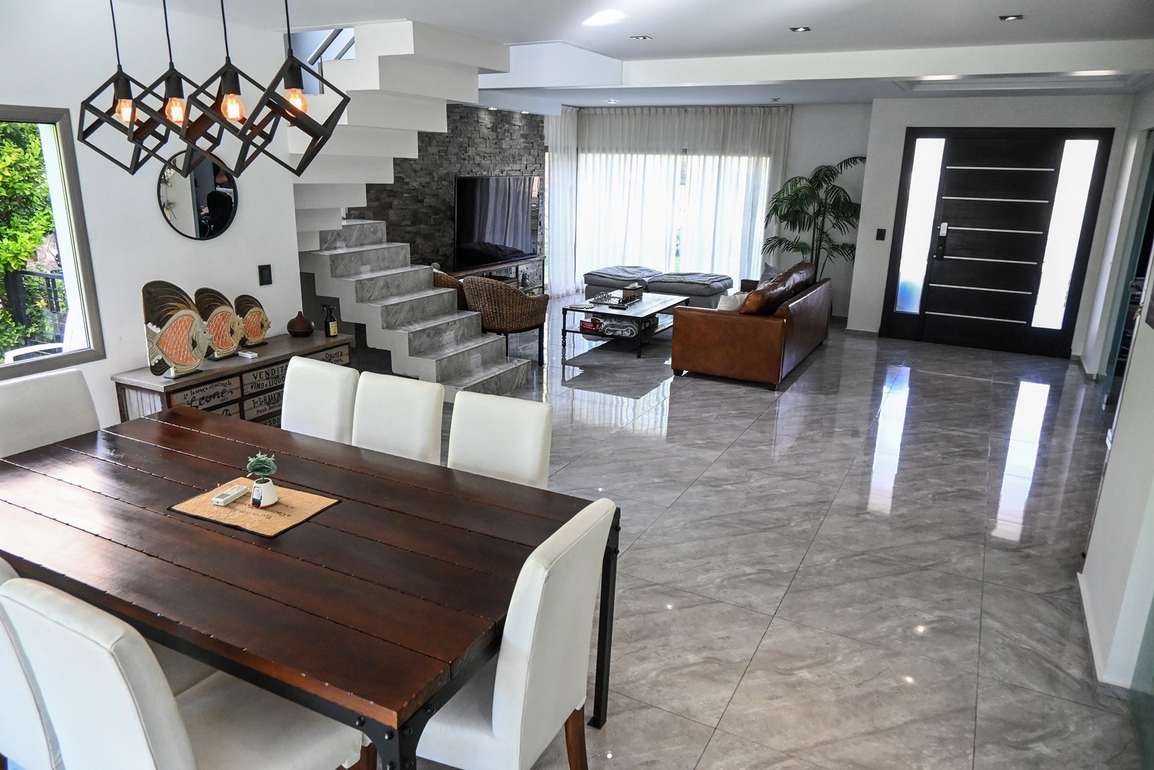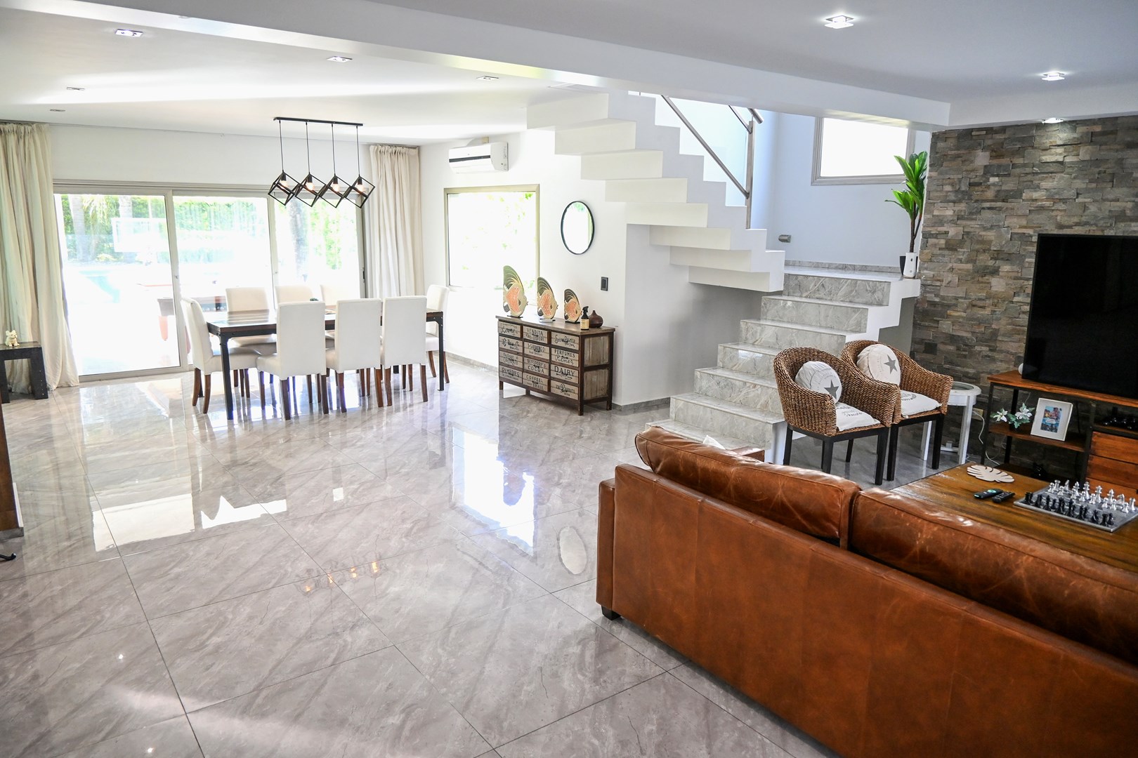 IMPECABLE!! Excelente casa Moderna, de 5 dormitorios sobre lote central de 1060 m, a la venta en la Lomada de Pilar, con excelente ubicación y calidad de construcción! En PB ingresamos a un gran ambiente concepto abierto, muy amplio y luminoso, que integra el estar-living con el comedor principal, placard de recepción, y toilette de recepción. Cuenta además con un estudio amplio, apto 5to dormitorio (en PB). Hermosa Cocina totalmente equipada con muebles tipo rauvizio y gran isla central. Lavadero amplio con espacio para lava/secarropas/freezers secundarios. Dependencia de servicio con baño completo, ideal para el parque/piscina. Exterior: Gran galería con cerramiento vidriado, parrilla a gas, y horno pizzero. Hermoso parque con riego automático, piscina revestida y climatizada de 50 m2. Cochera semicuebierta para 2 autos y gran explanada vehicular para 4 autos adicionales. PA: Gran pasillo que conecta los 4 dormitorios. 2 de ellos en Semisuite que comparten un baño completo, y una bellisima terraza con vistas al parque. Suite amplia con vestidor y baño completo. Y Master suite con baño con jacuzzi, gran vestidor, y hermosa terraza. Detalles: aberturas con DVH, pisos de porcelanato, calefacción por losa radiante, refrigeración por splits frio/calor en todos los ambientes, termotanque de alta recuperación y bomba de filtrado automático NUEVOS.