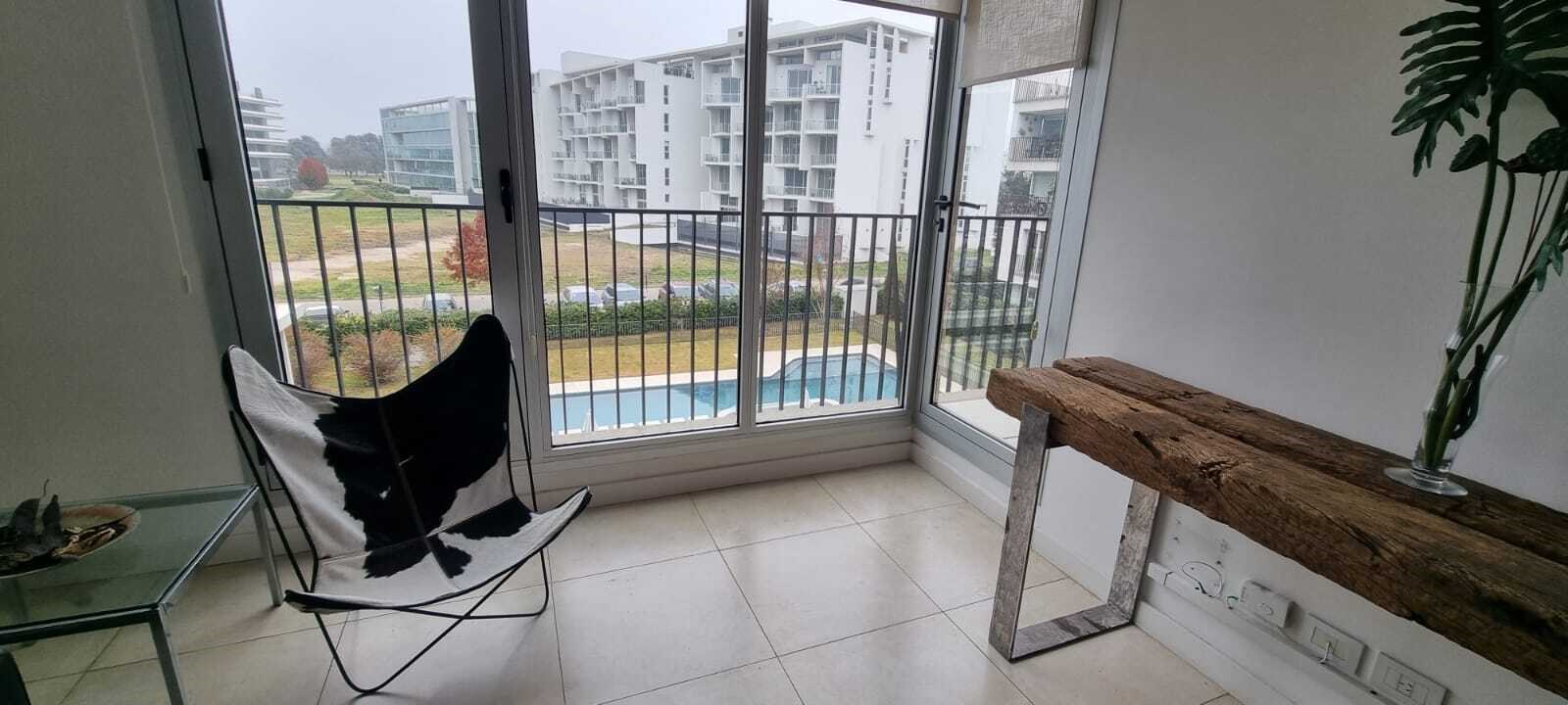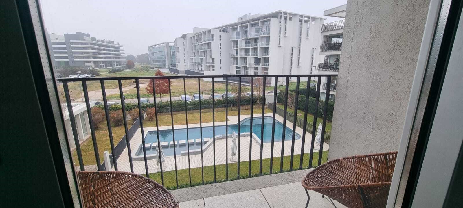 EXCELENTE DEPARTAMENTO AMUEBLADO en alquiler en VILAHAUS! Cuenta con gran living comedor, y cocina integrada totalmente equipada con hermosa barra. Placard de blanco. Dormitorio con placard amplio y baño completo con bañera. Ambos ambientes cuentan con Split frio/calor. Balcon con hermosa vista plena a la piscina. Cochera. Detalles: Aberturas de aluminio con Doble vidriado hermético, splits frio calor en ambos ambientes, horno y anafe eléctricos, heladera, microondas, cortinas screen, amoblamientos de Landmark. Vilahaus es parte de Ayres Vila, el polo urbano más importante e innovador de Pilar, ubicado a metros del km 43 de Panamericana Ramal Pilar. Caracterizado por su diseño unico, ofrece unidades de 2 y 3 ambientes con cochera privada. Vilahaus cuenta con SUM con parrilla, pileta, gimnasio con sector de vestuarios, laundry y seguridad 24 hs.